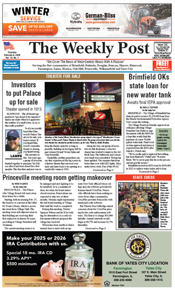 Frye buys Brimfield, Princeville pharmacies By JEFF LAMPEFor The Weekly Post BRIMFIELD – At a time when many small-town pharmacies are closing, the future looks much brighter for two local drugstores. On Jan. 1, Kevin Frye completed his purchase of Sherman’s Pharmacy and Princeville Pharmacy. His brother, Kody Frye, is the manager and pharmacist in Princeville and they become the second set of brothers to play active roles in providing medical assistance for local communities. Curtis Sherman, who started Sherman’s Pharmacy in September 1977, will continue working as a part-time pharmacist two days a week. His brother Keith Sherman, who worked…