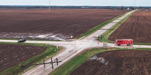 To make sure the picture went well, Elementary School Principal Marcy Brugger and her family spray-painted white lines in the shape of an E, inside which students and staff members assembled.